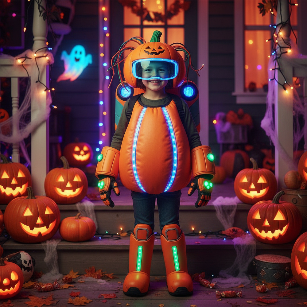 - Decoração coordenada: abĂłboras iluminadas, hologramas, adereços de IA (por exemplo âprompt de luzes interativasâ).