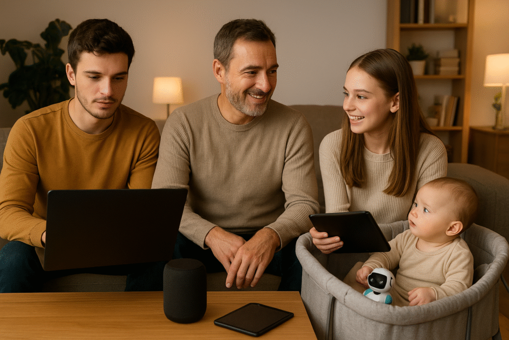 Famílias diversas, famílias usando IA, encontram na tecnologia um ponto comum. O adolescente usa prompts para estudar; o bebê interage com histórias sonoras; o pai junta tudo em rituais semanais. O resultado é conectar gerações com IA sem apagar diferenças — reduzindo problemas geracionais com combinados simples.